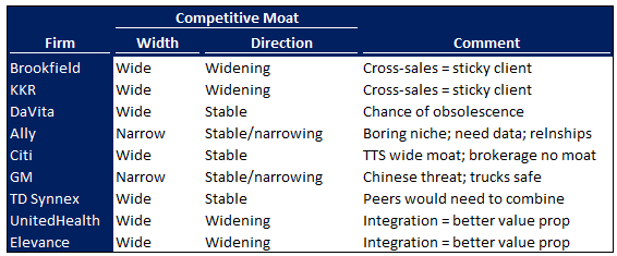 We aren’t selling down other positions solely because of valuation, though UNH and ELV have better risk/reward. Nor are we selling other positions because of conviction — I arguably understand Citi better than I understand our two MCOs now. What I think is that in addition to really good management execution, these companies also have wider moats than I thought, wide or wider than our existing holdings, and that their moats are growing.