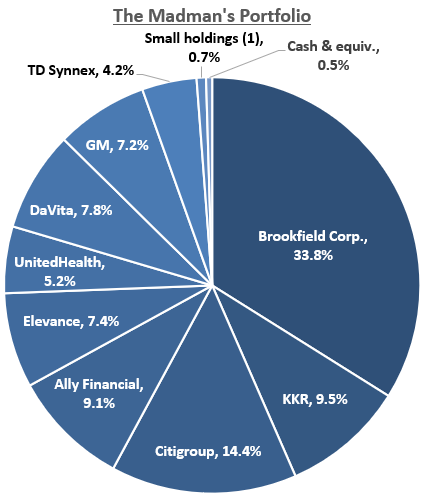 I would think of our alt. asset managers and our healthcare MCOs on a combined basis. Brookfield + KKR = 43.3%, Elevance + UnitedHealth = 12.6%. They share similar competitive positions and will benefit from similar industry tailwinds, so the thesis is more industry-level than company-specific. However, I think it’s fair for you to assume we own more Brookfield than KKR because we like & understand it more.